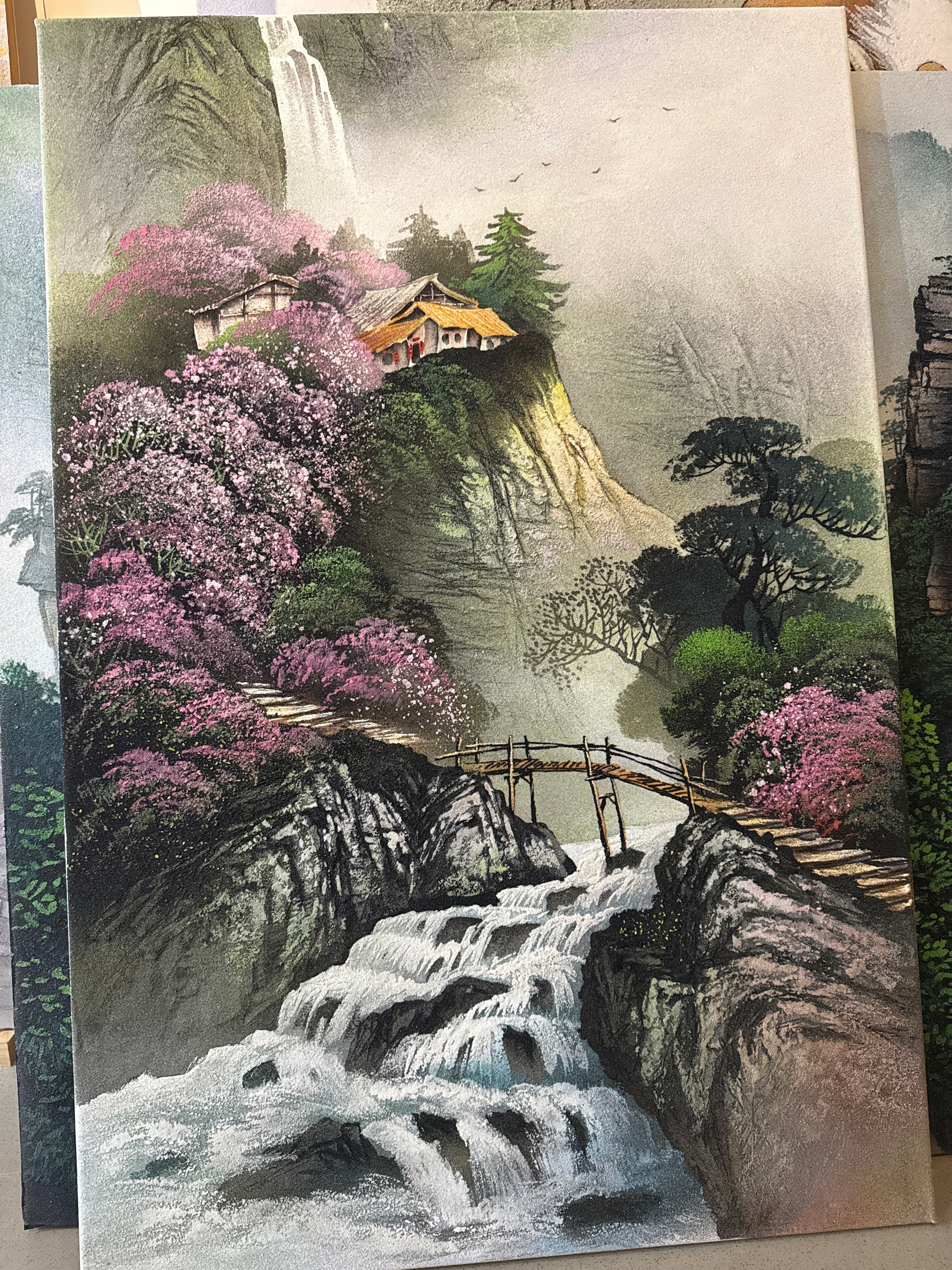 This piece is more than a painting—it's a celebration of the harmony between humanity and nature, a theme deeply rooted in Tujia culture. Whether displayed in a home, office, or gallery, it invites viewers to pause, reflect, and find inspiration in the timeless beauty of mountains, blossoms, waterfalls, cottages, and streams.