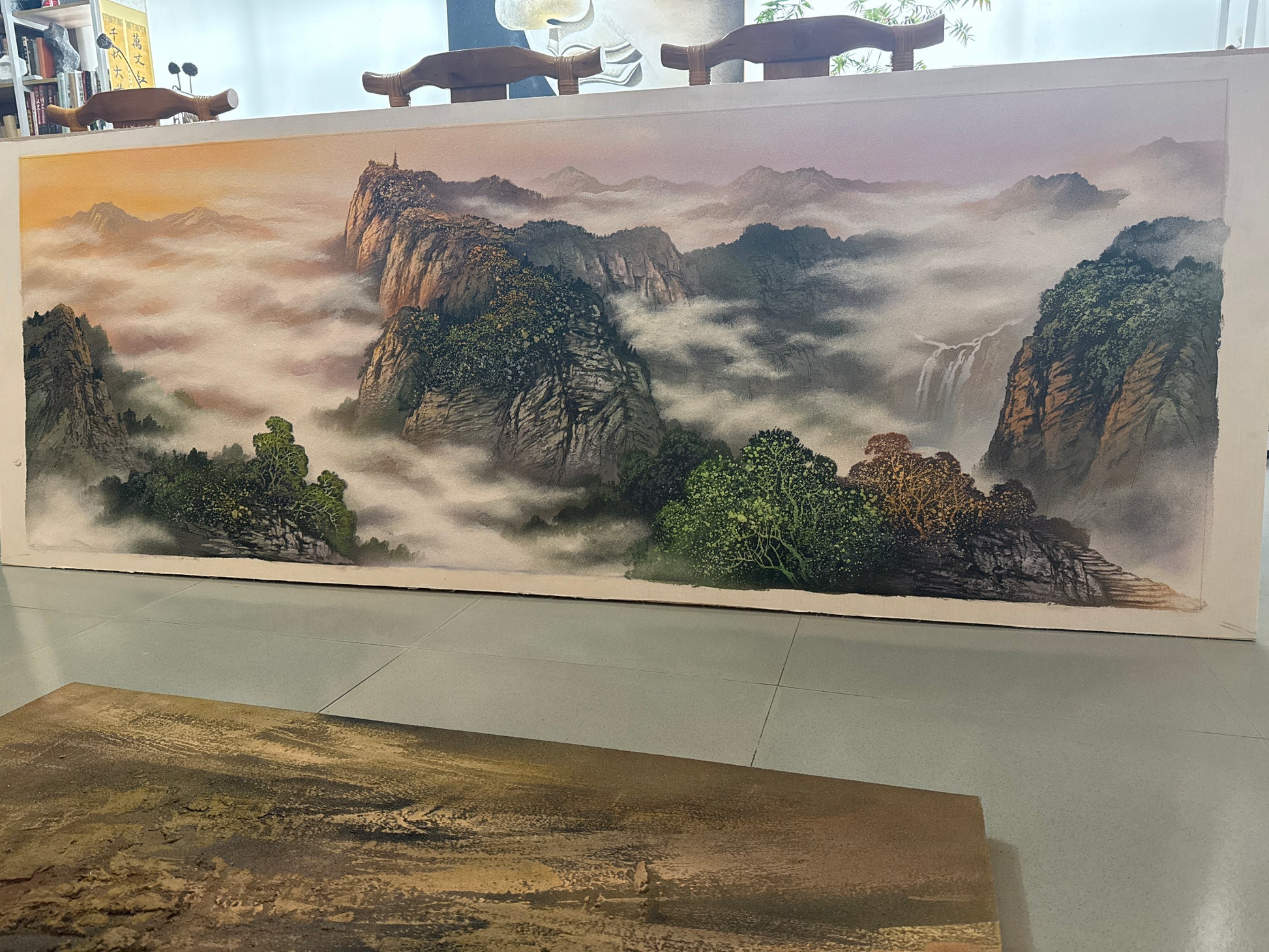 This piece is more than a painting—it's a meditation on the sublime harmony between earth and sky, a theme deeply rooted in Tujia culture. Whether displayed in a home, office, or gallery, it invites viewers to lose themselves in the tranquility and grandeur of the natural world