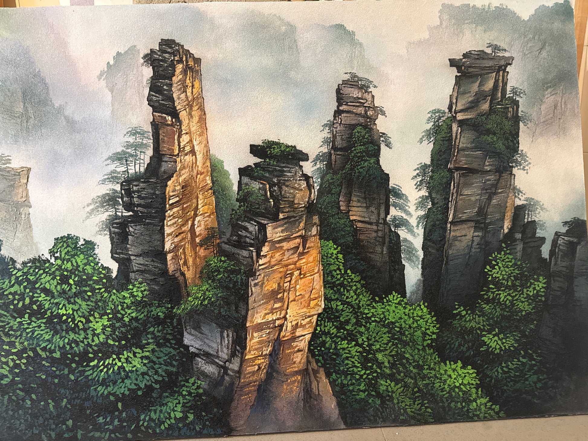 This piece is more than a painting—it's a celebration of the harmony between humanity and nature, a theme deeply rooted in Tujia culture. Whether displayed in a home, office, or gallery, it invites viewers to pause, reflect, and connect with the timeless beauty of Zhangjiajie's iconic peaks.