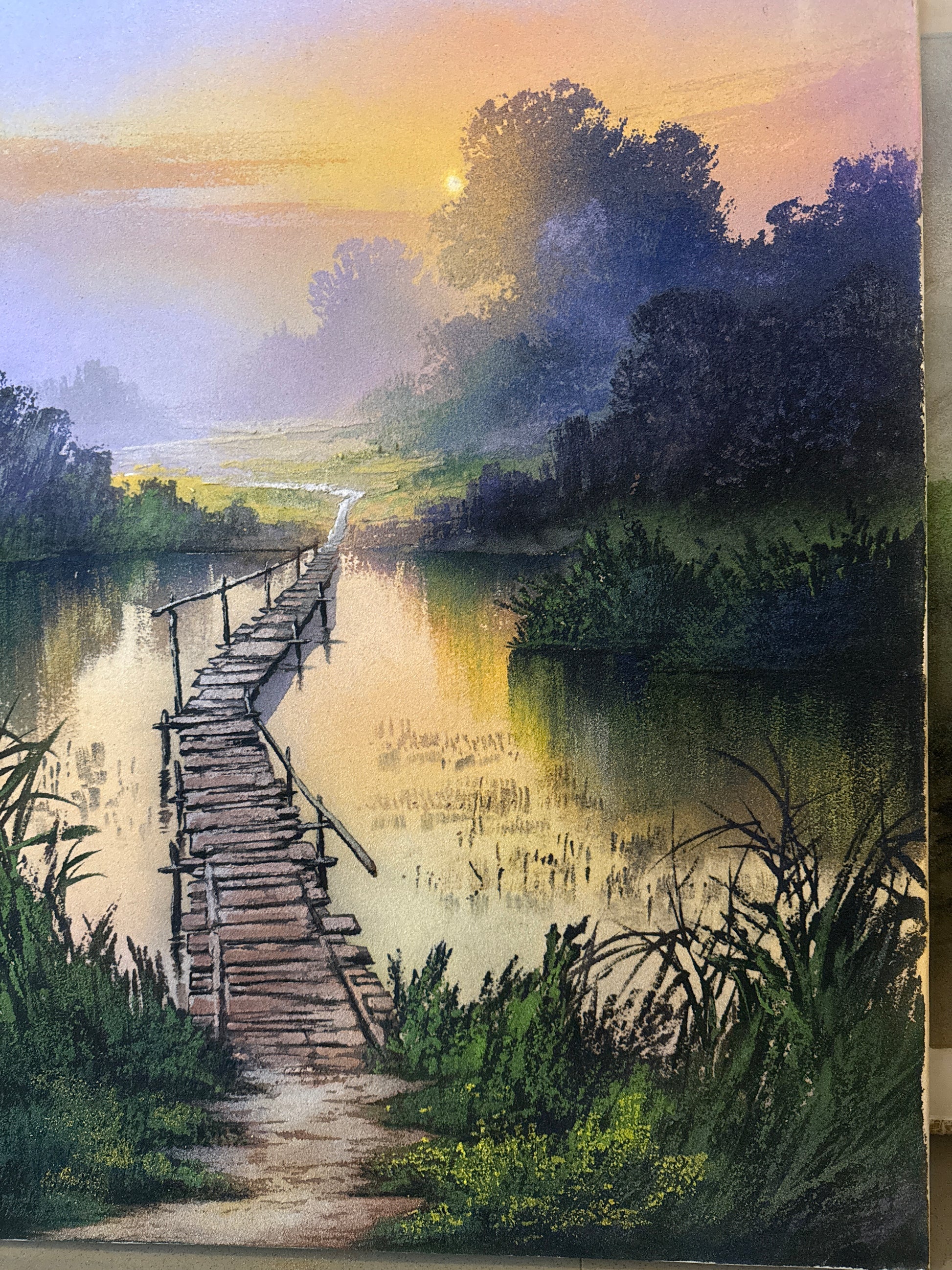 Theme: The serene beauty of woodlands, streams, and wooden bridges